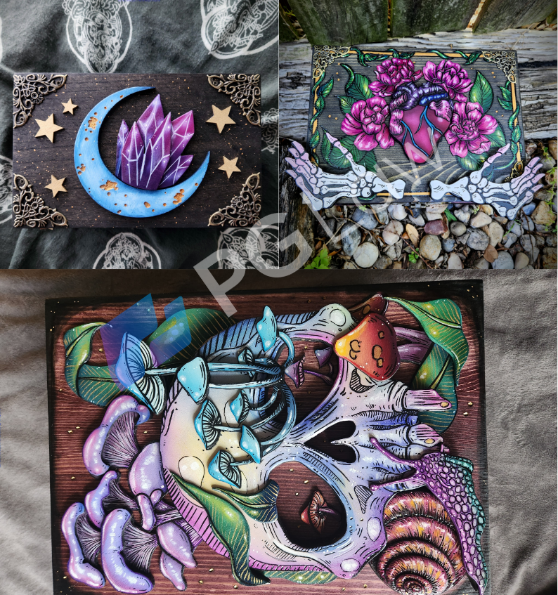 Candace Houchin is the owner of the federal copyright registrations that protect the creative content of Candace Houchin’s images and illustrations. Candace Houchin is a professional artist from United States. Candace Houchin’s work incorporates bright colors, woodworking, and fantasy elements to create compelling practical works of art.