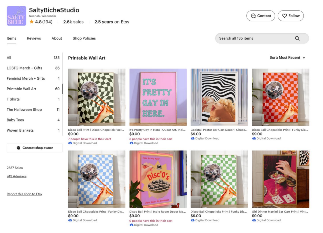 CAROLINE VALSAINT, isthe owner of the Copyright Registrationsthat protect the creative content of the Caroline Valsaint Works. Valsaint is a digital designer and fine artist. Equal parts vintage and camp, her work blends collage and pop art, creating cheeky, thoughtprovoking designs. Plaintiff is a Chicago-born artist who found herself starting over after coming out, where she left behind a marriage and a deeply religious community in search of a more authentic life. In 2019, she began her career path as a fine artist, later expanding into digital design in 2022. By early 2023, she launched her store on Etsy.com with products that are a vibrant celebration of women’s rights, queer love, and bold self-expression. Valsaint’s work resonates with audiences online and has also led to meaningful collaborations with LGBTQ organizations.