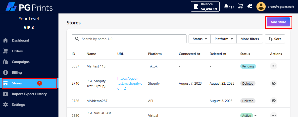 ==> Follow next instructions to authorize PGPrints to get your account’s orders information then back to app.pgprints.io/stores, check status of the store: