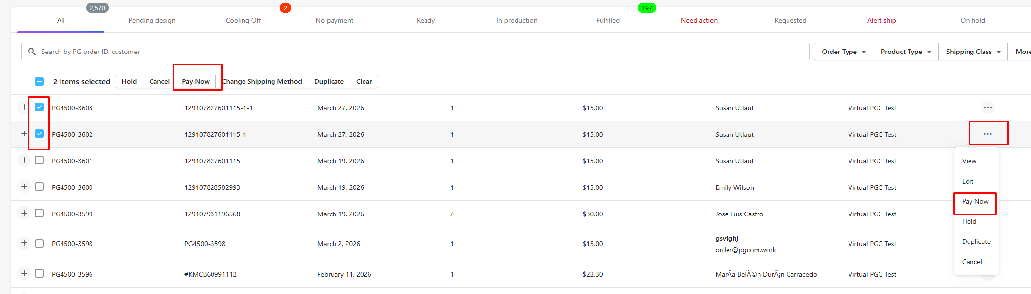 – Other reasons: additional fees applied orders in “Ready” and “In Production” status will be requested by PGCom and wait for seller’s confirmation.