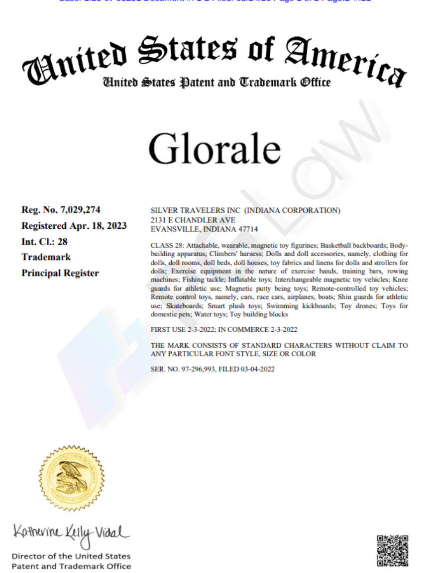Plaintiff is a United States corporation registered at, and with its principal place of business at, 2131 E Chandler Ave, Evansville, IN 47714-2223. Plaintiff was established in 2021, and the GLORALE brand was used in commerce in 2022.