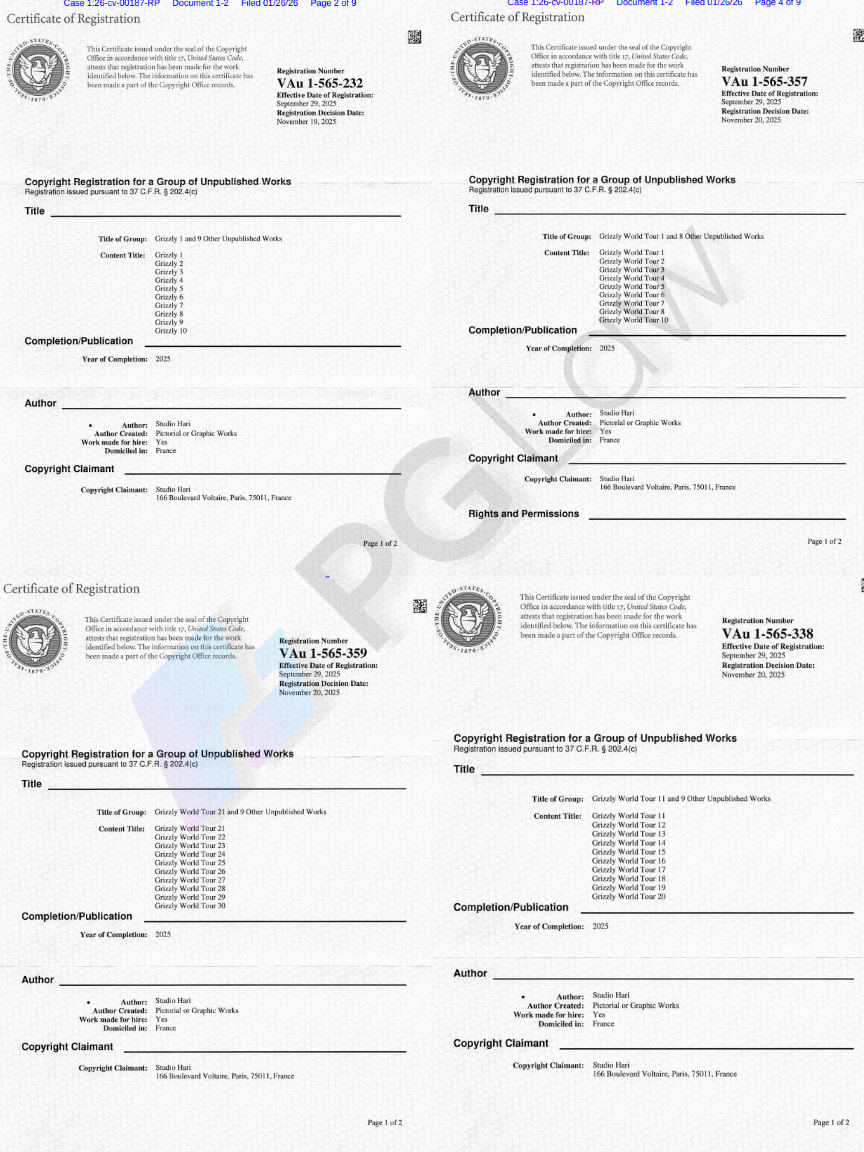 | 26/01/2026 | 26-cv-00187 | Aronberg Goldgehn | Grizzy Copyrights | Hari Studios |