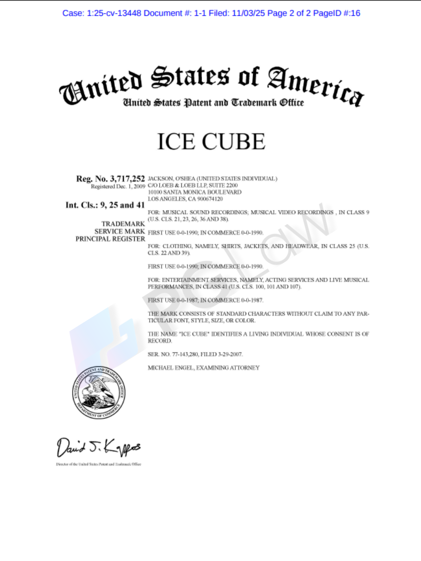 | 03/11/2025 | 25-cv-13448 | GBC | Ice Cube | Merch Traffic, LLC |