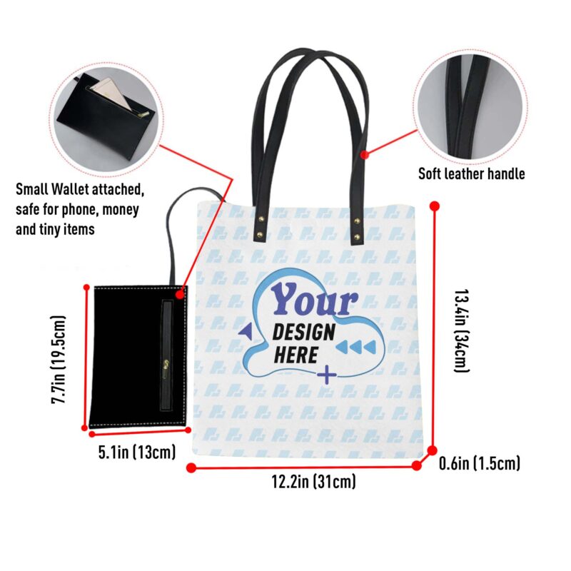 - The set comes with an attached small black wallet that is seamlessly integrated with the tote bag for added convenience and accessibility.