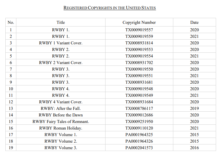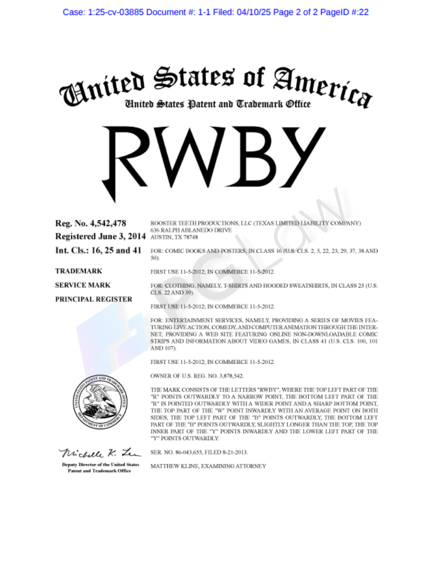 | 10/04/2025 | 25-cv-03885 | Aronberg Goldgehn | RWBY | VIZ Media, LLC |