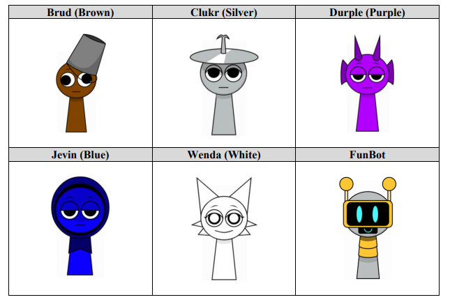 The Sprunki characters associated with the game have gained significant popularity among those in the online gaming community. Some of Sprunki’s copyrighted characters are displayed below: