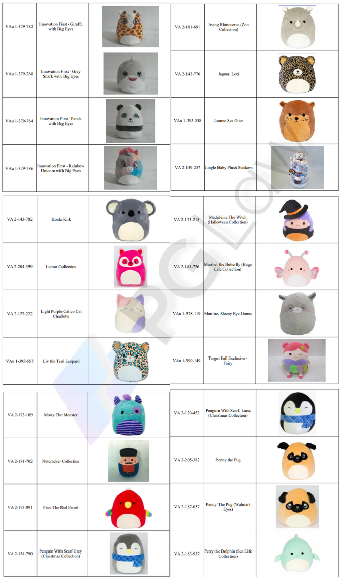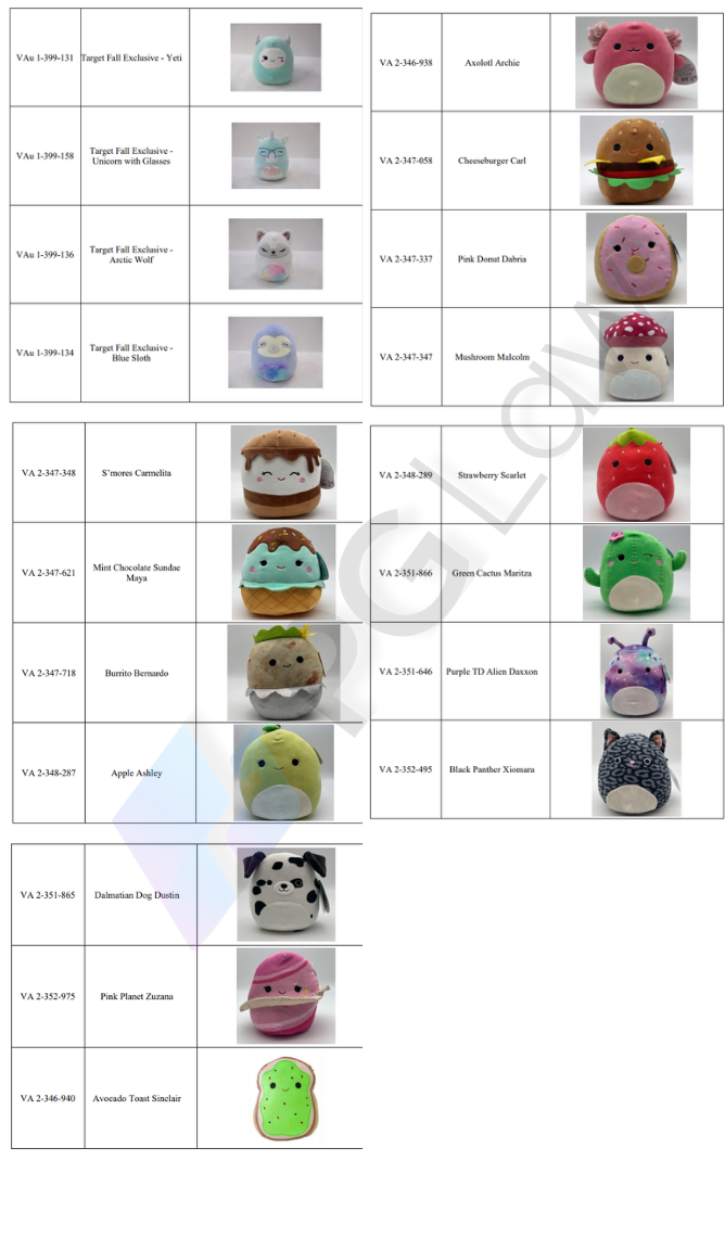 One of the most popular Kelly Toys brands is Squishmallows, a line of loveable plush toys made with a super soft, marshmallow-like texture that come in a variety of sizes from 3.5-inch clip-ons to extra-large 24-inch plush toys. The Squishmallows products have expanded to other styles including, but not limited to,  Squishville, Micromallows, Hug Mees, Stackables, Mystery Squad, and Flip A Mallows (collectively, the “Squishmallows Products”). Since their debut in 2017, over 400 million Squishmallows Products have been sold worldwide.