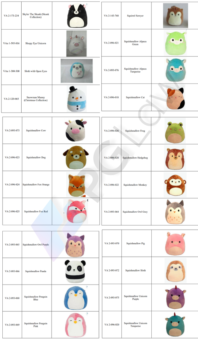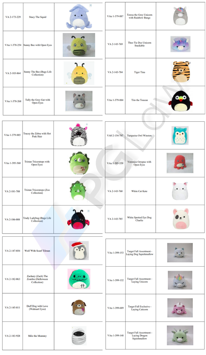 Several of the SQUISHMALLOWS Trademarks are registered with the United States Patent and Trademark Office, a non-exclusive list of which is included below.