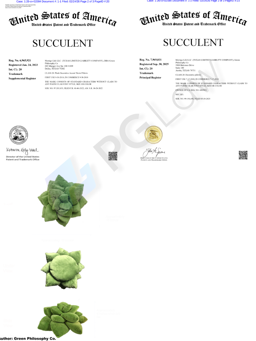 | 24/02/2026 | 26-cv-02084 | ? | SUCCULENT | Merrigo Life LLC |