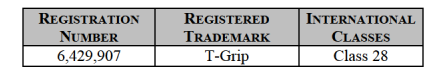 T-Grip LLC is a Massachusetts company whose main business is marketing and selling golf equipment. T-Grip spent a considerable amount of time researching, developing, and establishing their brand of golf equipment. T-Grip sells and will continue to sell its own golf equipment, which generates a considerable amount of revenue, via various channels including www.tgolfs.com/: