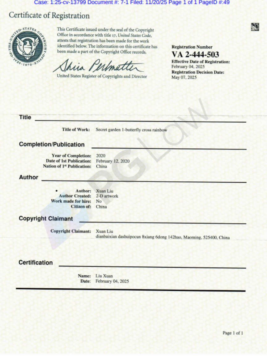 | 12/11/2025 | 25-cv-13799 | Getech Law LLC | Xuan Liu Product | Xuan Liu |